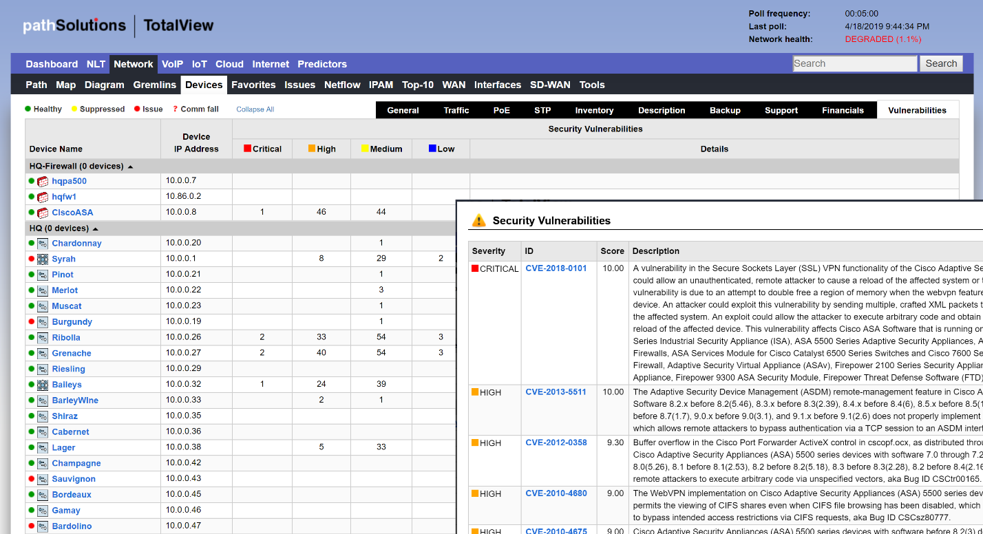 Figure 2. TotalView's Network Device Vulnerabilities Tab