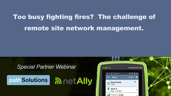 The challenge of remote site network management: This is the video recording of the network troubleshooting webinar led by Mike Pennacchi of Network Protocol Specialists, Tim Titus of PathSolutions and Dan Klimke of NetAlly. This webinar first discusses the challenges of remote site network management with the focus on how to stop fighting network "forest fires" and how to start presenting them, followed by a demo of PathSolutions and NetAlly network monitoring tools.