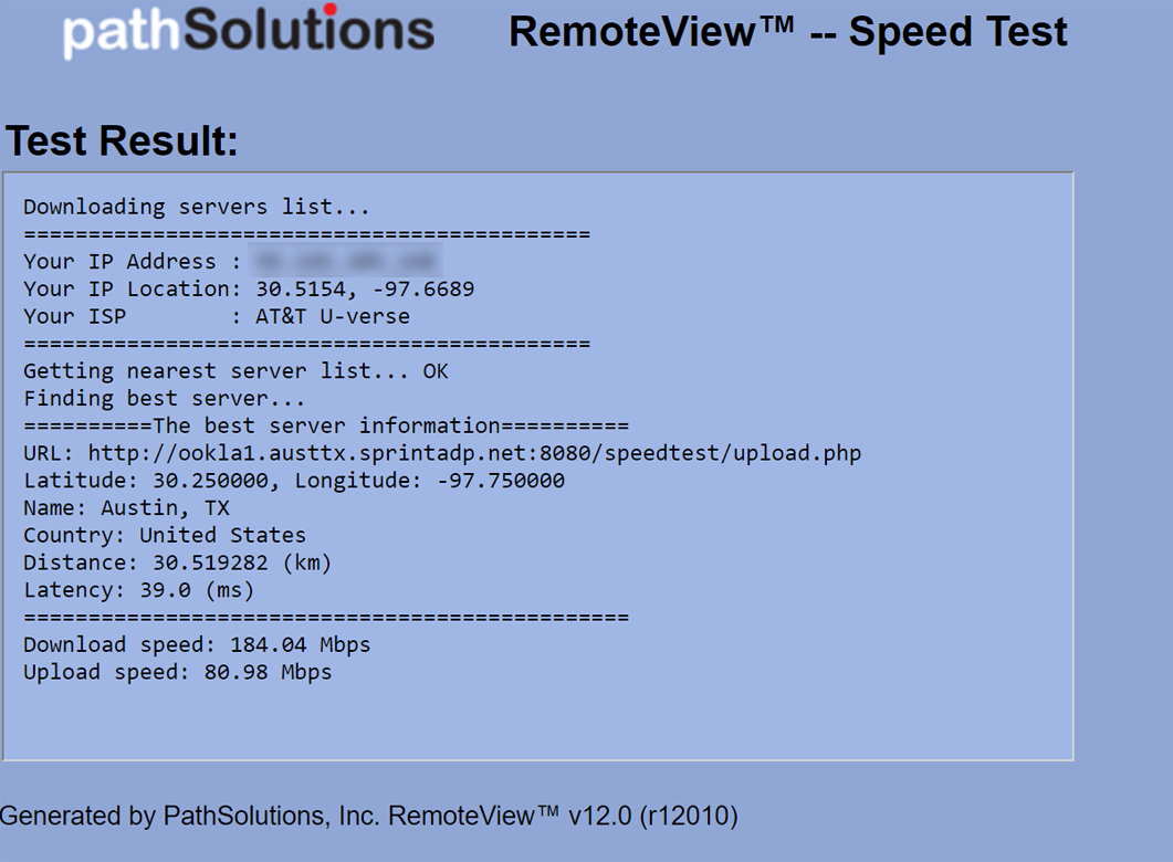 The speed test report will determine the location of the computer, it’s public IP address, and the upload and download speeds offered by the ISP.