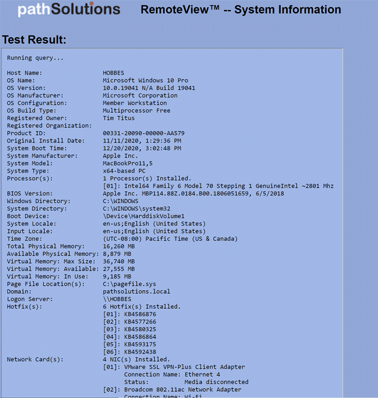 This report shows all of the internal information about the operating system and configuration of the computer.