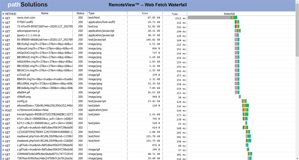 Is a web page slow to load? You can quickly determine why with a web waterfall report that will show each element fetch, and the amount of delay each is causing. Thus, it is easy to see if the delay is due to a stalled server, slow DNS result, slow content fetch, or delayed JSON from a database query.