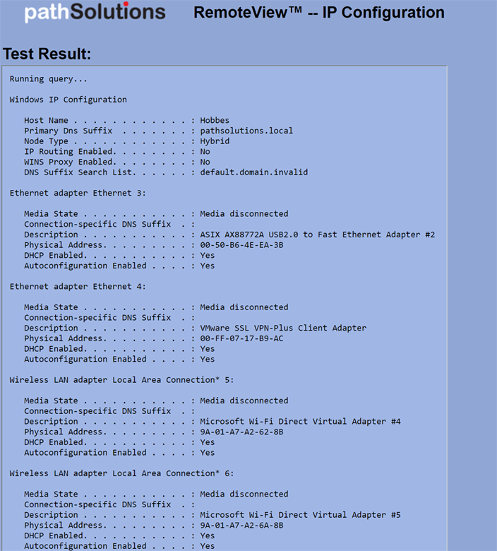 The IP Configuration report will show all IP address information on the computer to help understand the configuration of the network adapters.