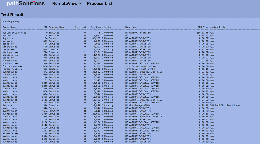 This report shows all of the running processes on the computer along with the CPU and memory of each process.