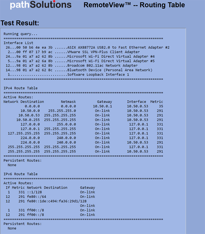 This report will show the IPv4 and IPv6 routing table on the computer.