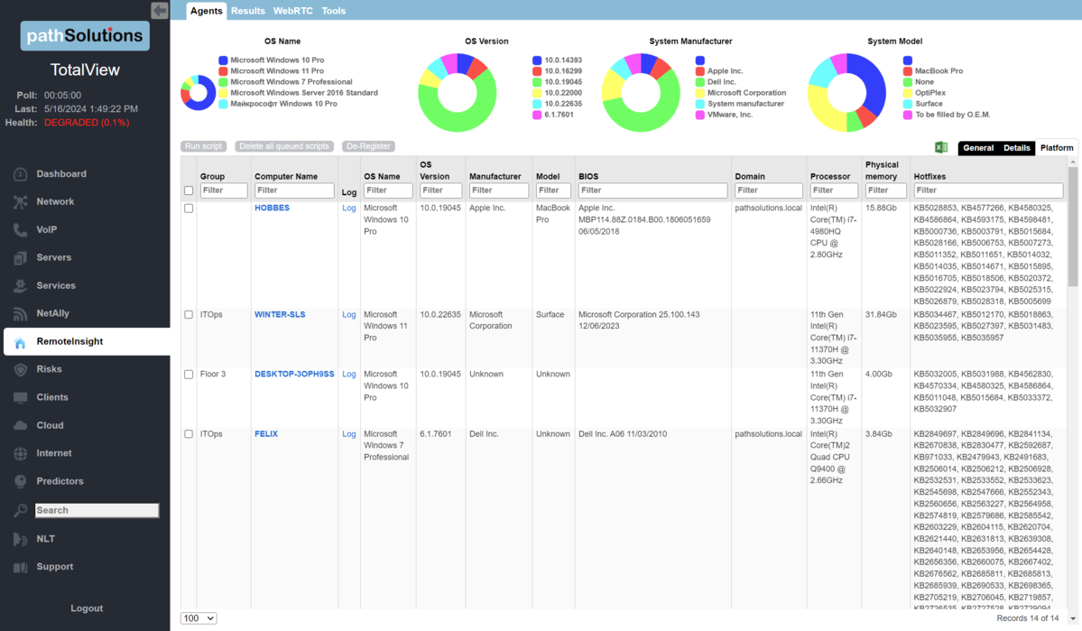 With 22 different test/collection types, more information can be remotely collected and analyzed than with any other solution on the market. This means that troubleshooting of remote user problems is easy because all of the right information is in front of an engineer.