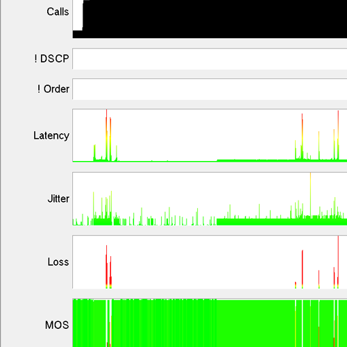 “The call quality problem between x3726 and x4412 at 8:45 am was due to the Marketing2 switch interface #6 dropping 9% of its packets due to a cabling fault.”